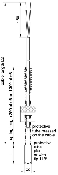 - Sheathed resistance thermometer with connectorless wires